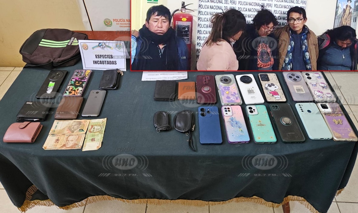 José Carlos Berrios Sucso (33 años), oriundo de Juliaca quien cuenta con antecedente penal, habiendo cumplido 10 años de condena por homicidio, Manuel Laurente Huilca (53 años), Sonia Tupa Quispe (52 años), Yemelin Leticia Cruz Llanos (31 años) la única residente en Tacna y Celia Miranda Quispe (61 años) de quien la PNP indicó que jugaba un rol crucial, encargándose de recibir y guardar los celulares robados en sus bolsillos.
