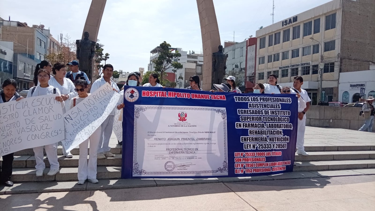 La protesta, que se realiza de manera pacífica a nivel nacional, responde a una situación que, según los manifestantes, se arrastra desde hace más de 33 años. Betty Roque, representante de los técnicos titulados en Tacna, y Magdalena Medrano, técnica en enfermería que labora en el Hospital Hipólito Unanue, explicaron que el personal se siente «discriminado» y «dejado de lado» a pesar de estar en la «primera línea de salud».