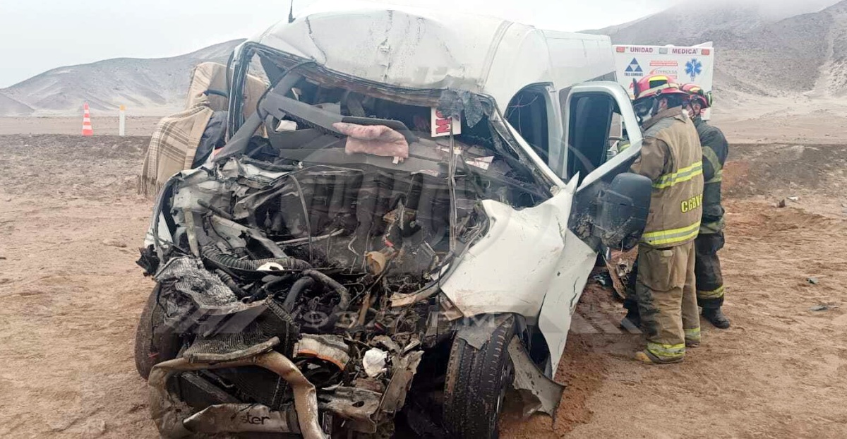Una colisión frontal entre una minivan de pasajeros y un camión cisterna ha dejado un saldo de cuatro personas fallecidas y seis heridos esta mañana. El lamentable accidente ocurrió en la zona del peaje de El Fiscal, específicamente en el kilómetro 1060, en la jurisdicción de Arequipa.