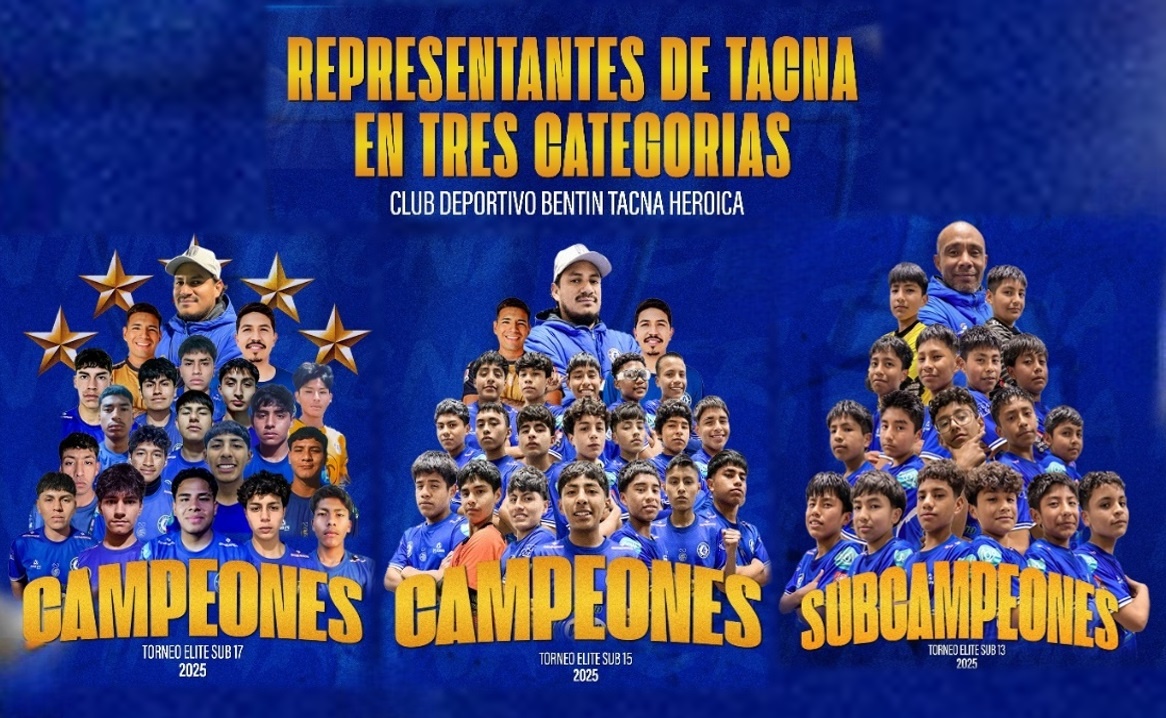 El Club Deportivo Bentín Tacna Heroica obtuvo importantes resultados en el Torneo Élite 2025, al coronarse campeón en las categorías Sub-15 y Sub-17, y lograr el subcampeonato en la categoría Sub-13. Estos logros reflejan el compromiso y la dedicación de los deportistas, entrenadores y familias que conforman la institución.