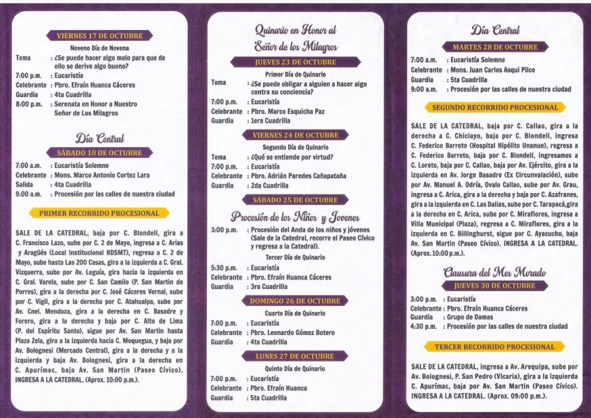 Finalmente, la procesión bajará por Bolognesi (lado de bajada), ingresará por la calle Apurímac hacia el Paseo Cívico, y cogerá San Martín de bajada para llegar a la Catedral.
