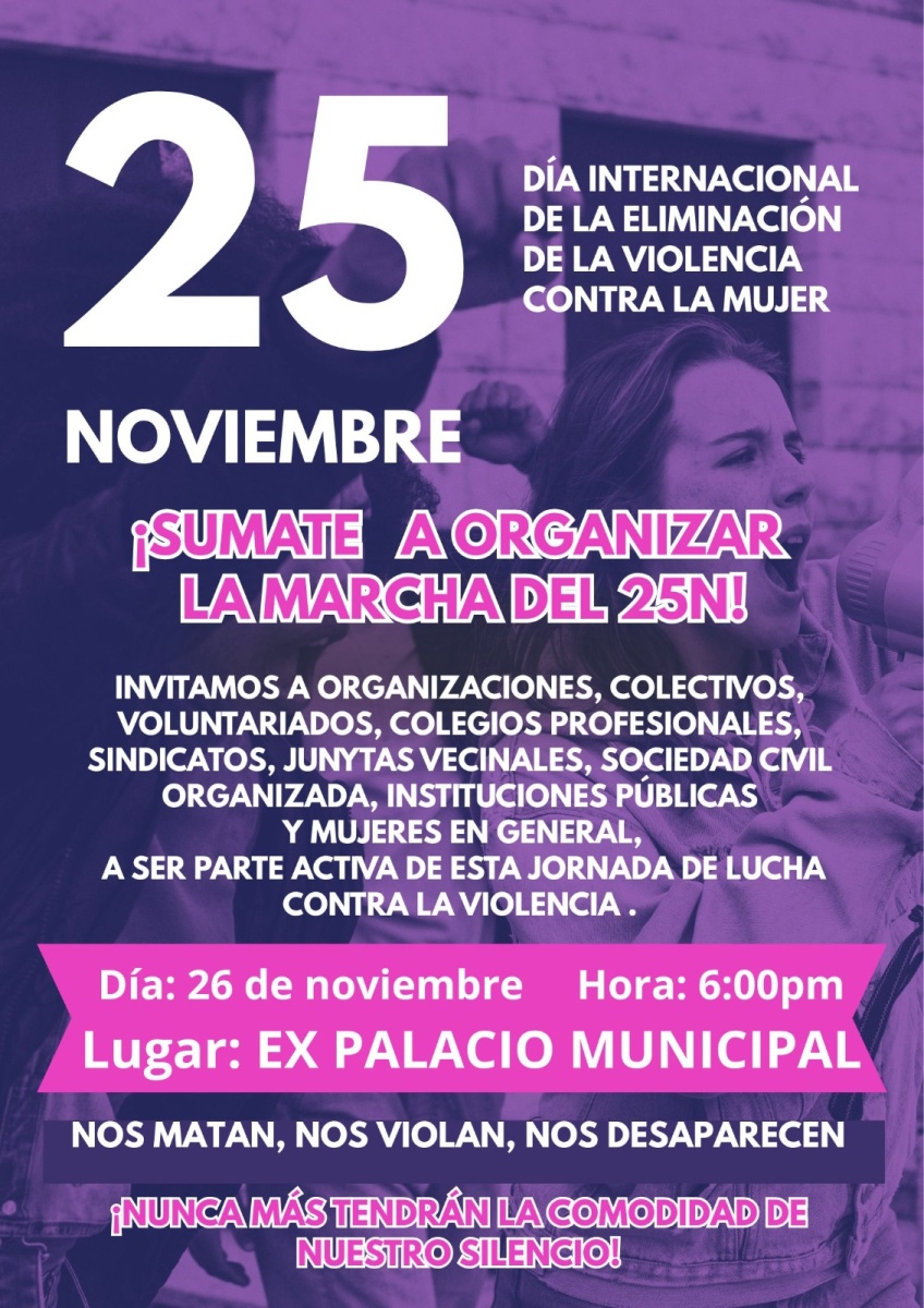 La programación inicia el lunes 25 de noviembre con el cine fórum “Cuerpos que hablan” en el Museo Ferroviario, desde las 6 p. m., con siete cortometrajes peruanos dirigidos por mujeres y diversidades. La muestra, gratuita y recomendada para mayores de 15 años, incluirá un conversatorio. El miércoles 26 se realizará la tercera reunión abierta para organizar la marcha anual, y la movilización central se llevará a cabo el sábado 29, desde la Plaza de la Mujer hacia el Centro Cívico.