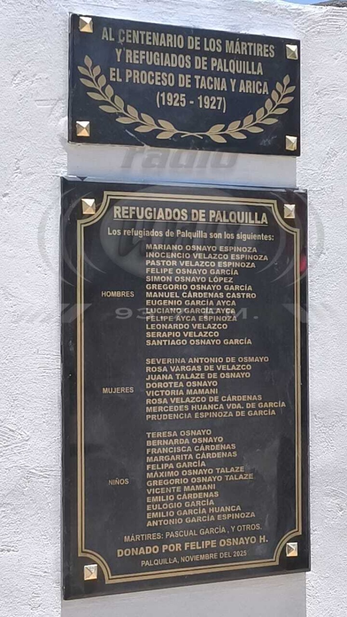 Un profundo sentimiento de memoria, honor y gratitud inundó la plaza principal de Palquilla este día, durante la solemne ceremonia del centenario que rindió homenaje a los pobladores que sufrieron los sucesos de Challaviento, Ataspaca, Palca, Palquilla y Caplina, en el marco del Proceso plebiscitario Tacna-Arica entre 1925 y 1927.