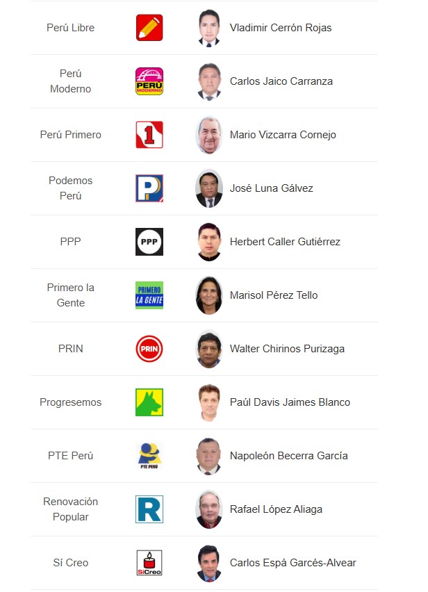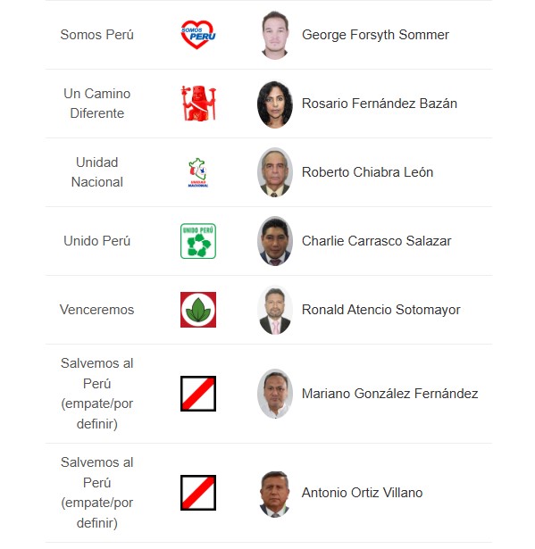 La lista completa de postulantes será confirmada en los próximos días, con dos casos pendientes de resolución: la candidatura de Alfredo Barnechea, que debe ser validada por el JNE, y el sorteo final en Salvemos al Perú.
