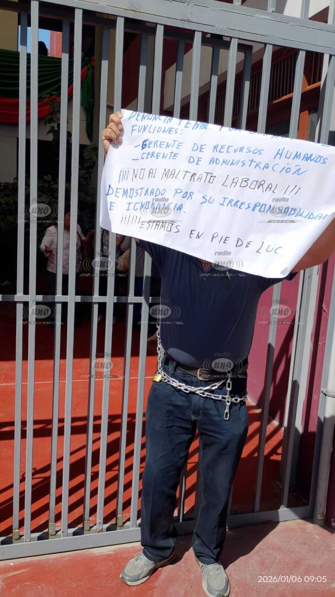 Crisis en la Municipalidad Provincial de Tacna. Trabajadores cesados sin beneficios laborales realizaron un plantón y un servidor municipal se encadenó a las rejas del recinto mientras la dirigencia sindical exigió la salida de funcionarios y el pago inmediato de la CTS para los 22 cesados. El dirigente Limber Calderón, cuestionó que la MPT no disponga de dinero para cumplir acorde a ley, pero sí desembolse más de 20 millones para contrataciones insulsas.