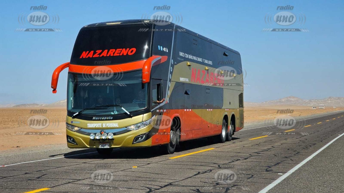 Uno de los aspectos que llamó la atención durante el operativo fue el uso de un bus de dos pisos, identificado con el nombre “Nazareno”, para el transporte de los reos.