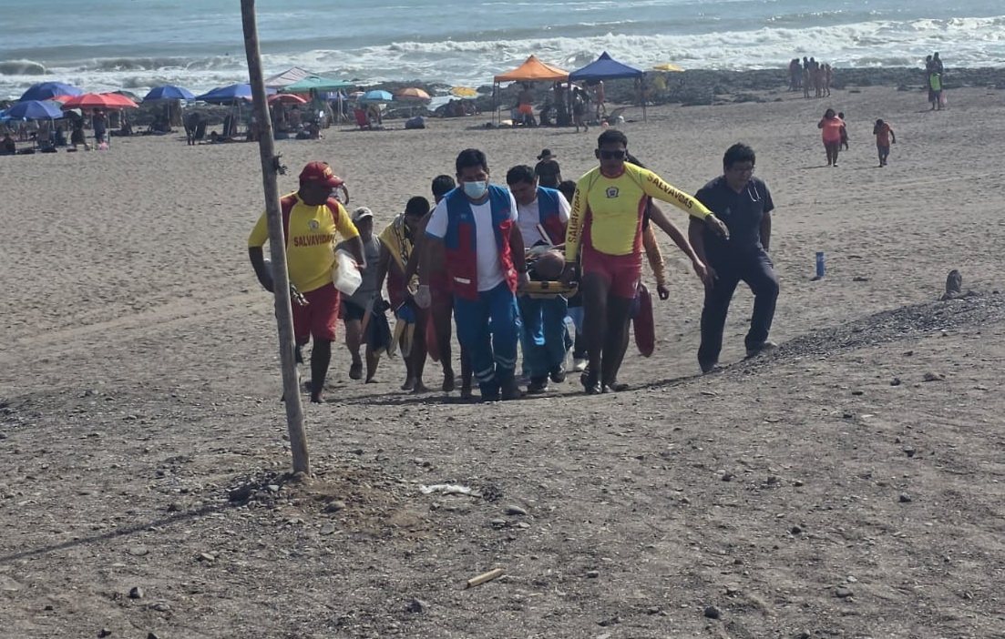 Posteriormente, en la playa Tomo Beach, se registraron dos incidentes. El primero involucró a Glory Navarro Izcarra (29), rescatada a 130 metros mar adentro. Sin embargo, la situación más crítica en este sector la protagonizó Máximo Humberto Castamán Risco, quien fue arrastrado a 200 metros de distancia. Debido a la ingesta de agua y a las dificultades respiratorias que presentaba, el hombre tuvo que ser evacuado de emergencia al hospital de EsSalud tras un rescate en el que los policías lucharon contra la braveza del mar.