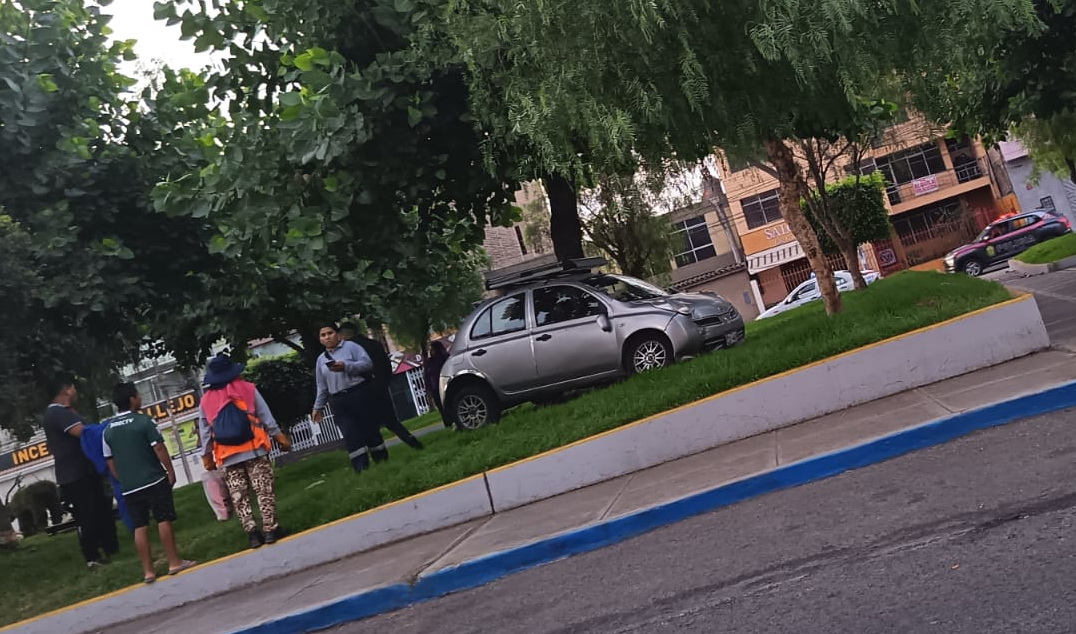 Tacna.— Un inusual accidente de tránsito se registró durante las primeras horas de este martes 24 en la concurrida Avenida Leguía, donde un vehículo de pequeñas dimensiones, terminó sobre el sardinel central de la vía.