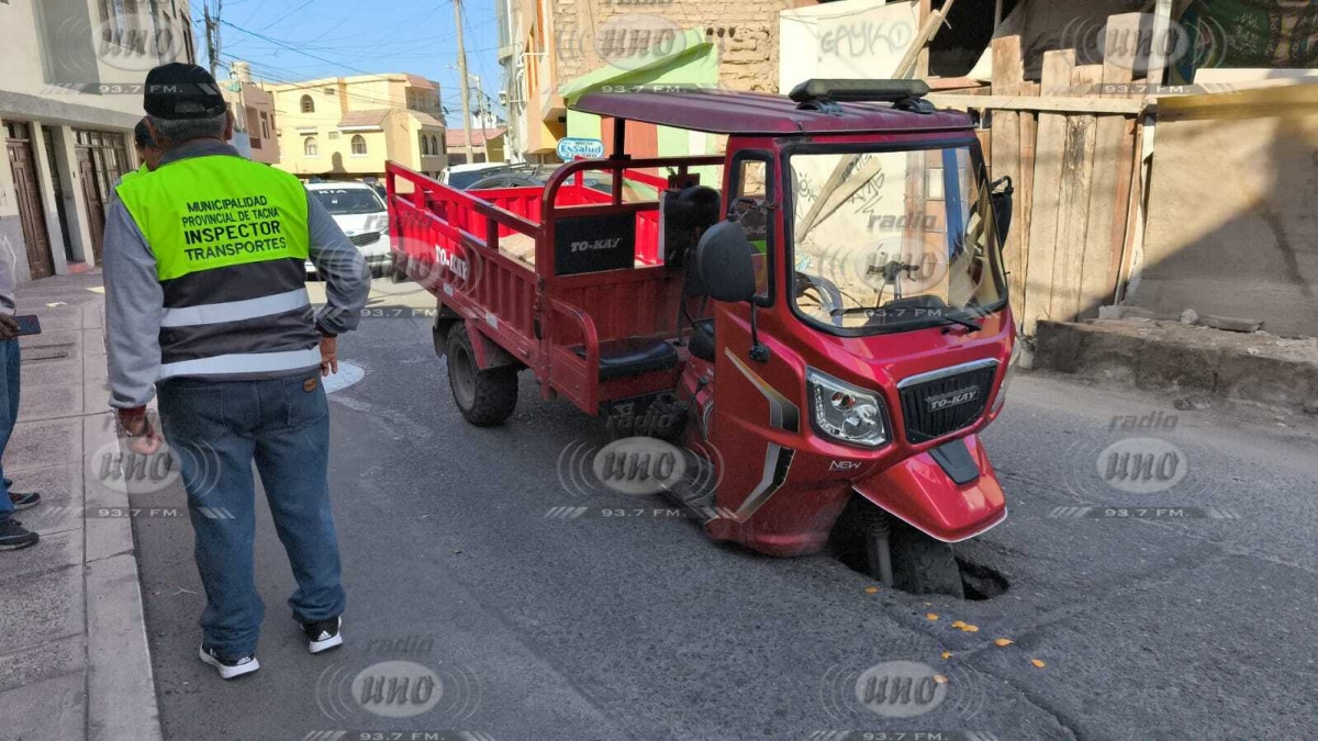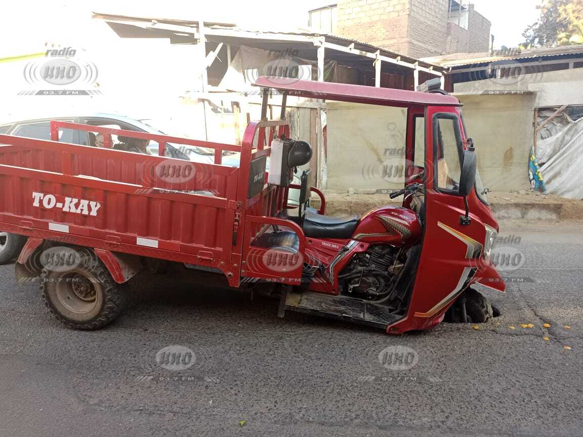 En la calle Francisco Cornejo, detrás del Instituto Newman, un vehículo tipo motocar, con placa 5502-DZ, quedó atrapado tras hundirse en un hueco que se abrió en la pista. El accidente ocurrió a escasos metros de la avenida Bolognesi, en un sector de alto tránsito en el centro de la ciudad.