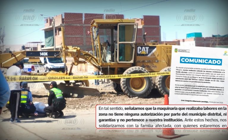 La Municipalidad Distrital Gregorio Albarracín Lanchipa emitió un comunicado oficial luego de que un niño de 8 años perdiera la vida al ser arrollado por maquinaria pesada hoy sábado en el sector del Promuvi Señor de los Milagros, aclarando que las actividades que provocaron el suceso no estaban autorizadas. El menor circulaba abordo de una … Sigue leyendo Maquinaria del GRT que arrolló y mató a niño no contaba con autorización