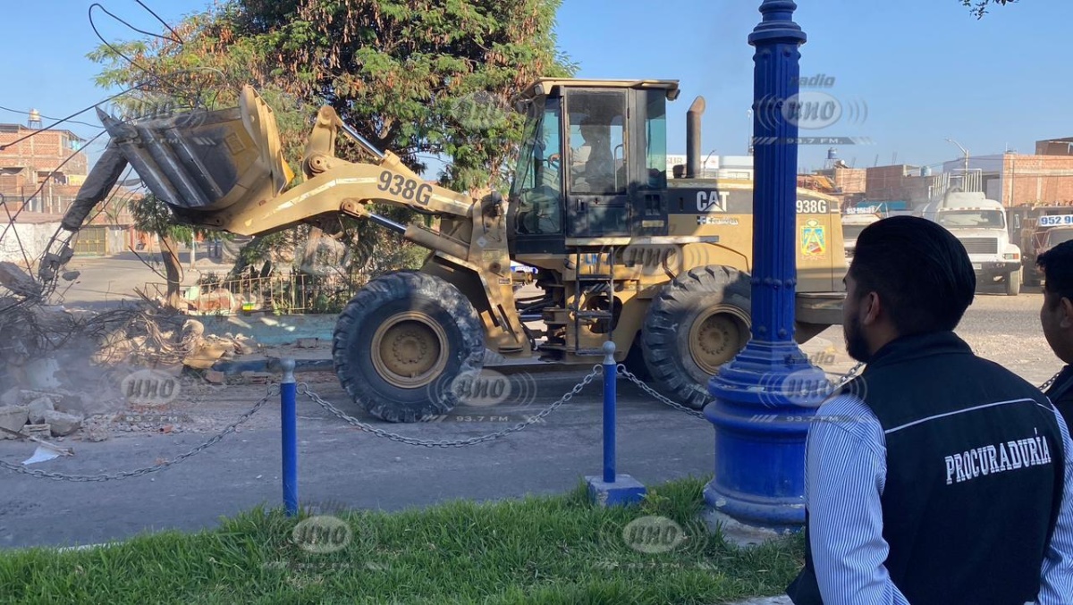 En un operativo iniciado a las 6:00 a. m., la Procuraduría Municipal intervino un área de aporte en la asociación Los Ediles. Con el apoyo de la Policía Nacional y maquinaria pesada, la municipalidad procedió a la demolición de una edificación de material noble ubicada en un área triangular que, según la autoridad, pertenece al Estado