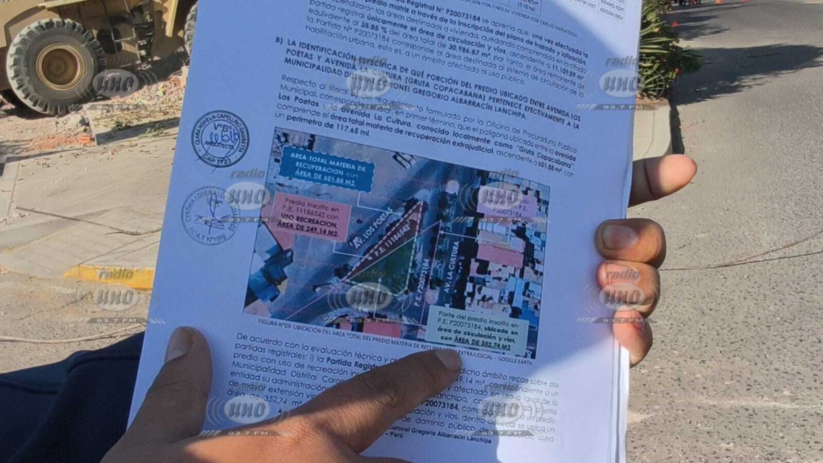 Daniel Mireles, procurador de la Municipalidad Distrital de Gregorio Albarracín, explicó que la intervención se ampara en la Ley 30230. Según el funcionario, aunque el terreno pudo ser propiedad privada inicialmente, las partidas registrales actuales en Registros Públicos indican que el área fue cedida como aporte para recreación pública y vías de circulación