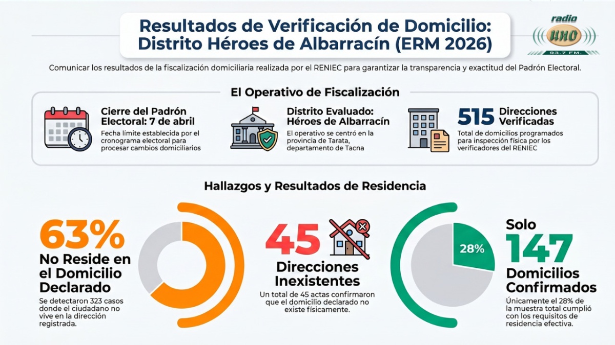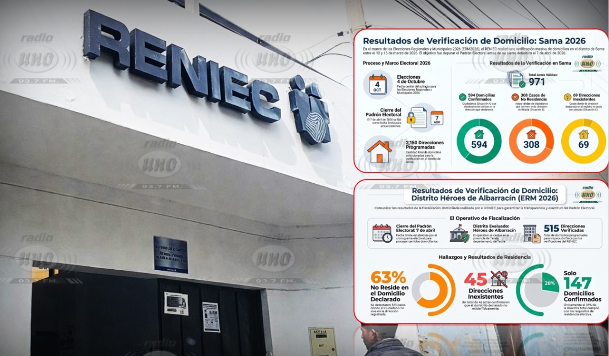 El Registro Nacional de Identificación y Estado Civil (RENIEC) ha puesto al descubierto un masivo movimiento de «votos golondrinos» en la región de Tacna, emitiendo resoluciones que obligan a cientos de ciudadanos a retornar a sus domicilios de origen tras detectarse irregularidades en sus cambios de residencia.