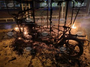 En el distrito Gregorio Albarracín, una mototaxi acabó totalmente destruida por el fuego, la madrugada de hoy en la asociación Villa Caplina, primera etapa, a