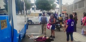 Un accidente de tránsito se registró en la avenida Leguía, donde una mujer resultó herida al momento de intentar subir a un bus de transporte